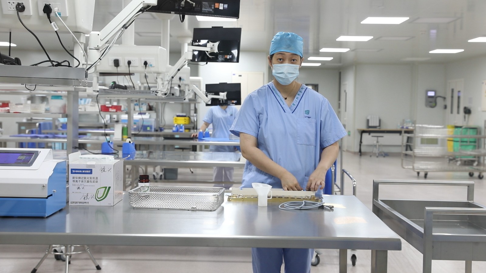 下午14点17分,福建医科大学附属厦门弘爱医院的消毒供应室护士正在整理医疗物品。王玉 供图