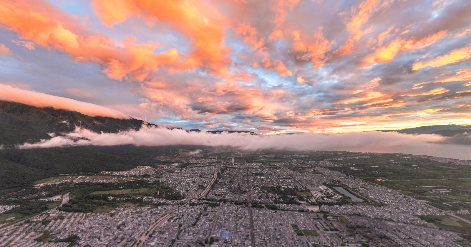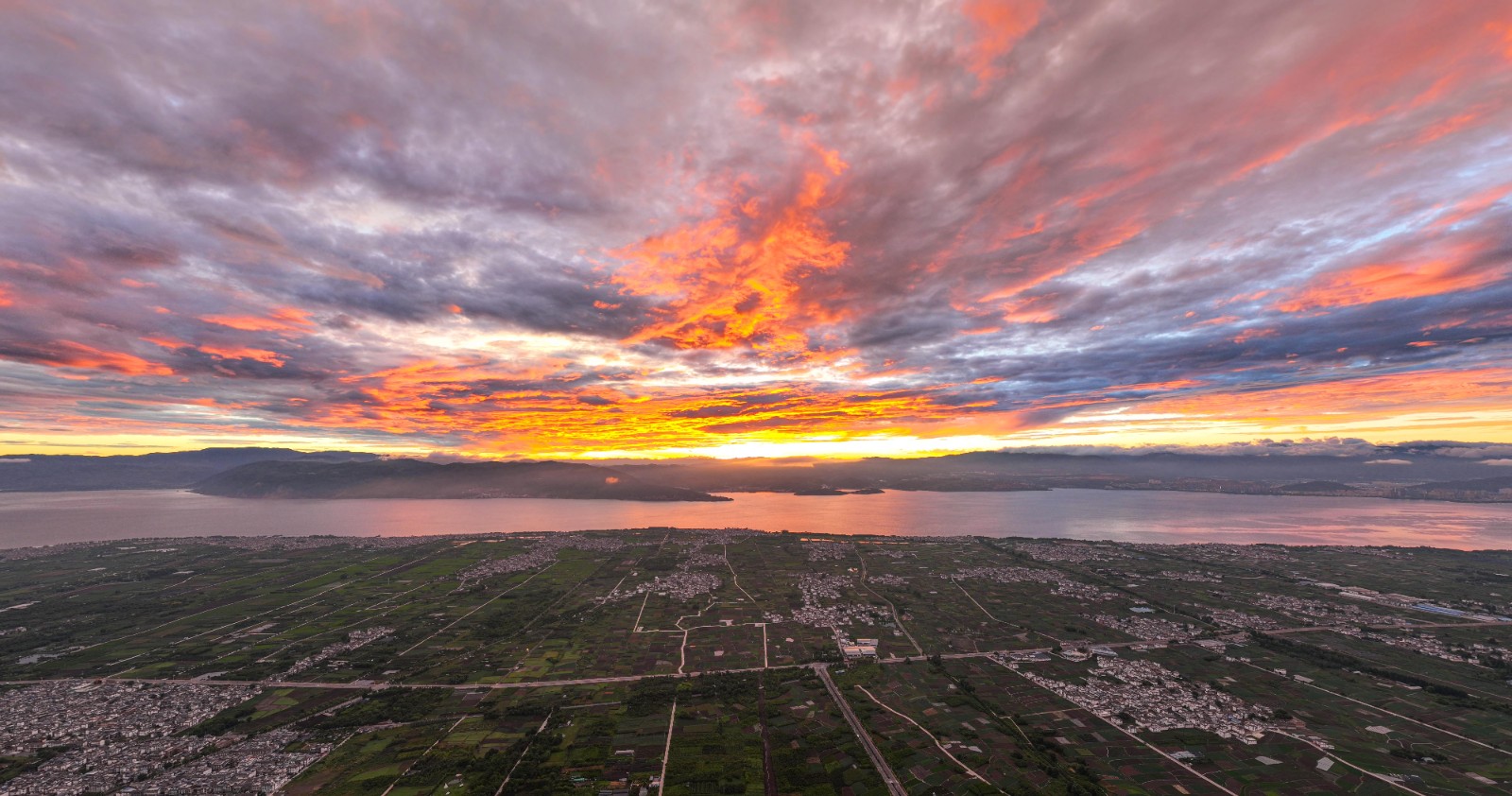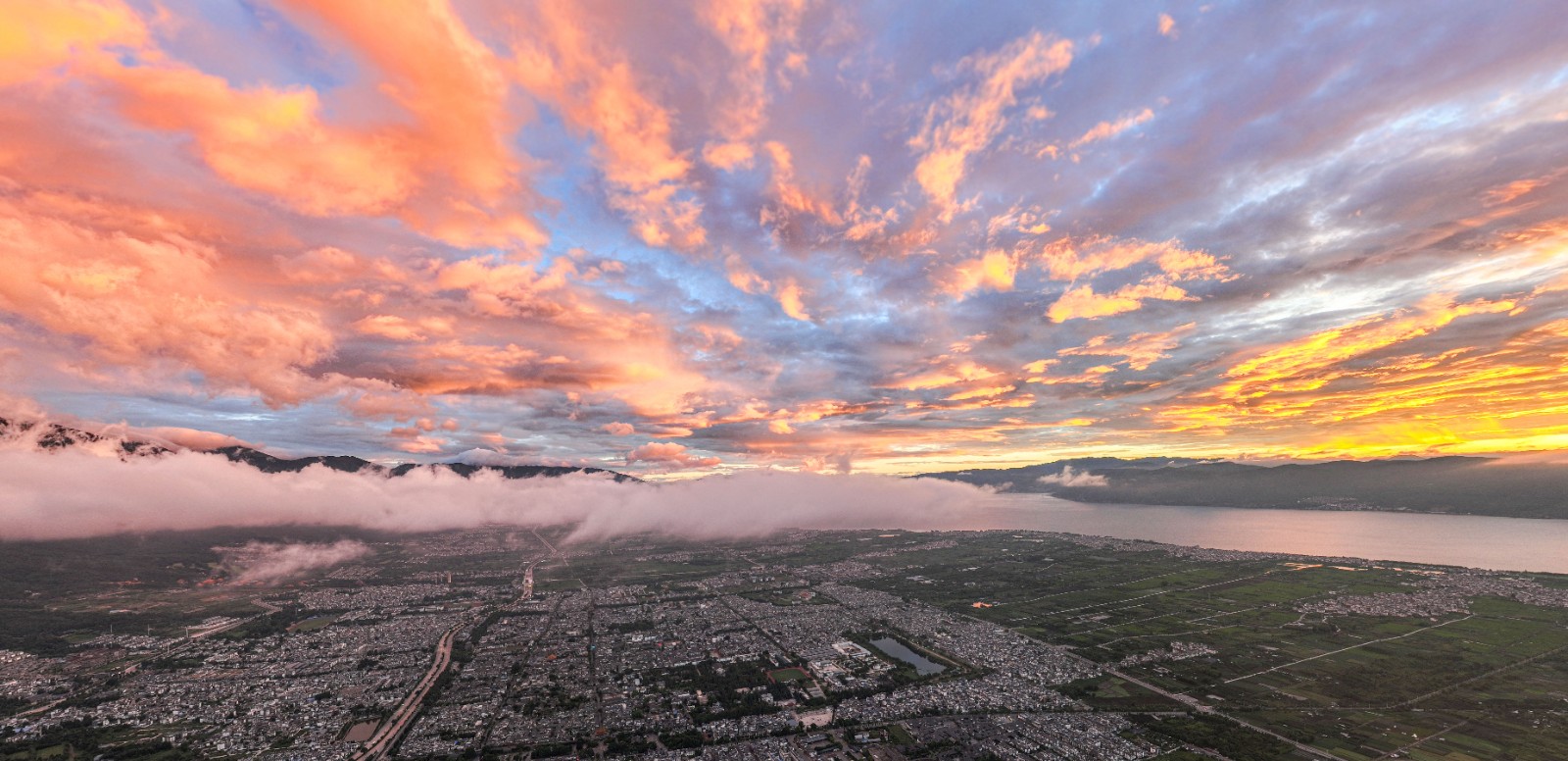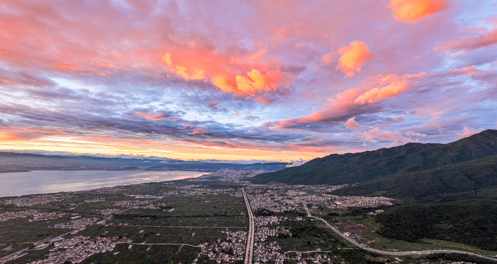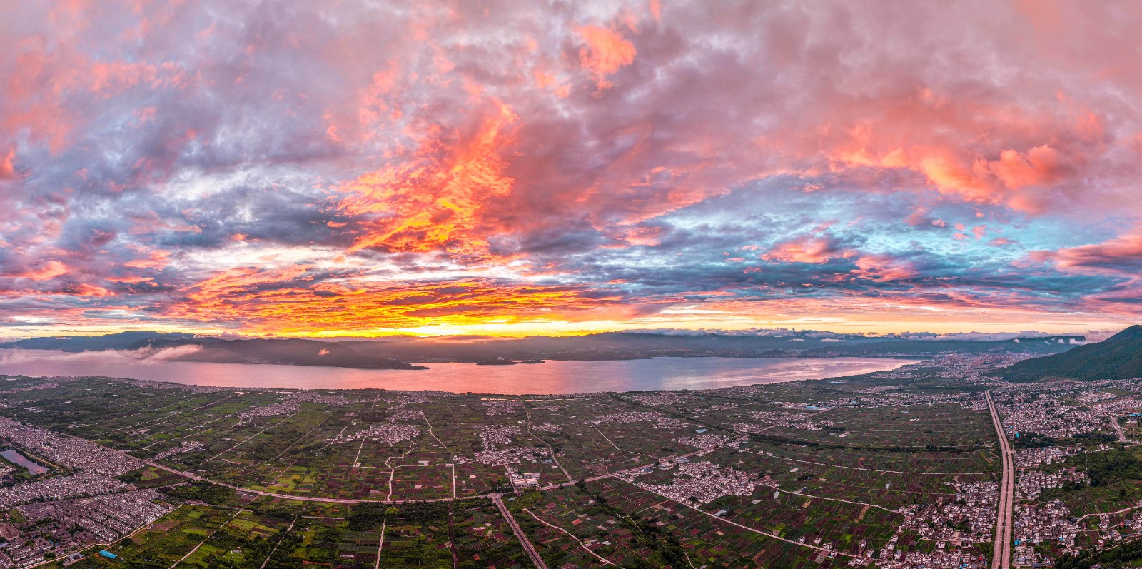 美!苍山洱海红霞满天