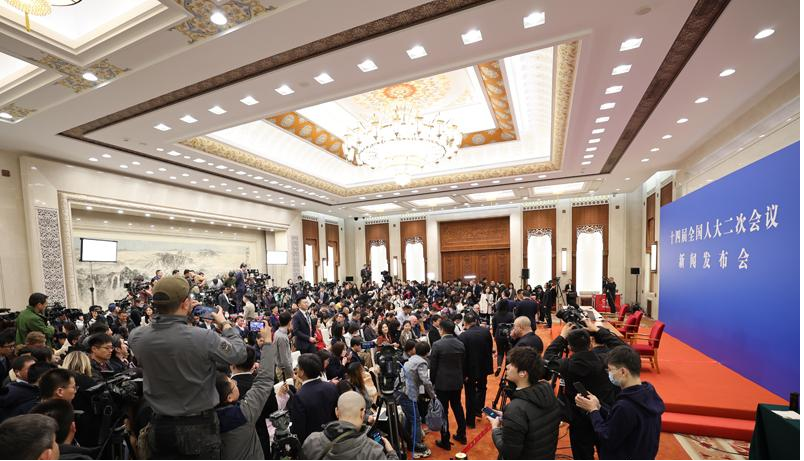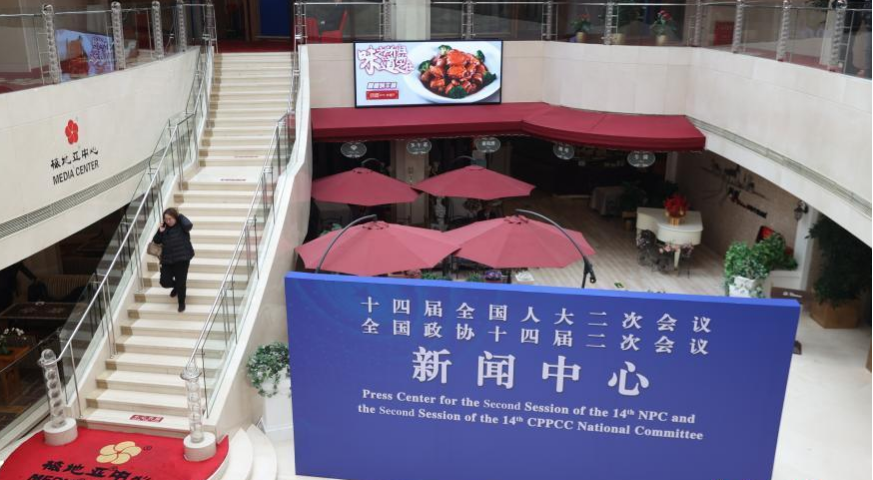 两会新闻中心已经正式启用,迎接中外记者到来。