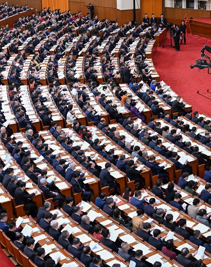2024年全国两会顺利召开,代表们在认真听会。