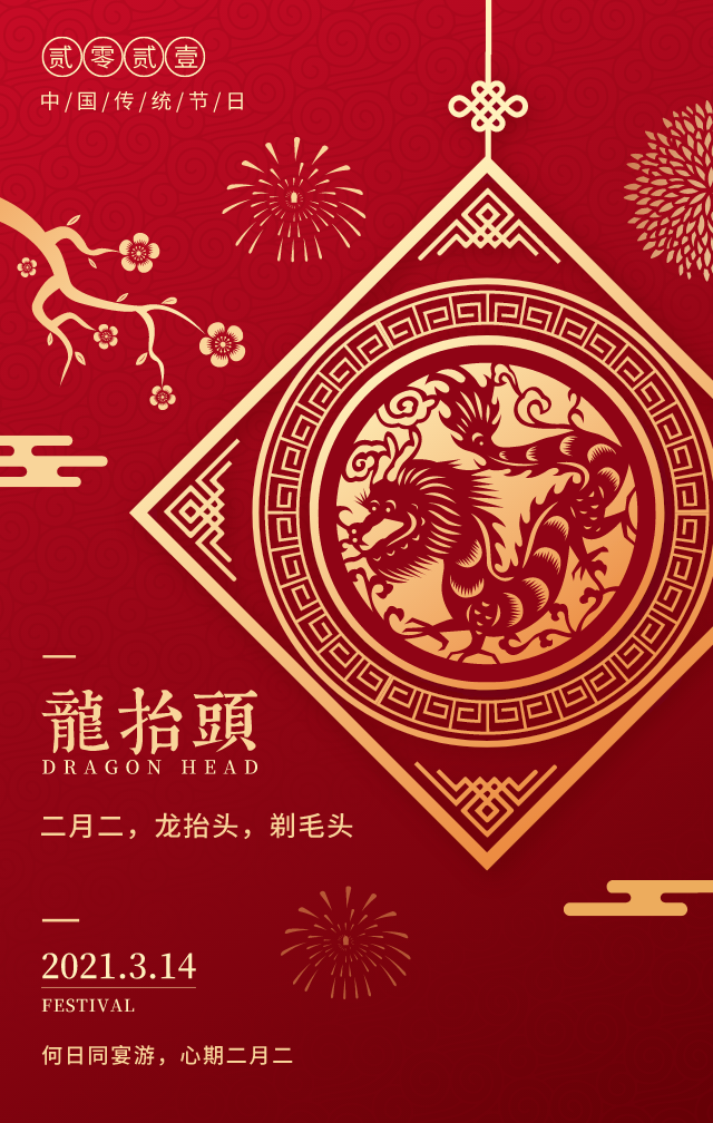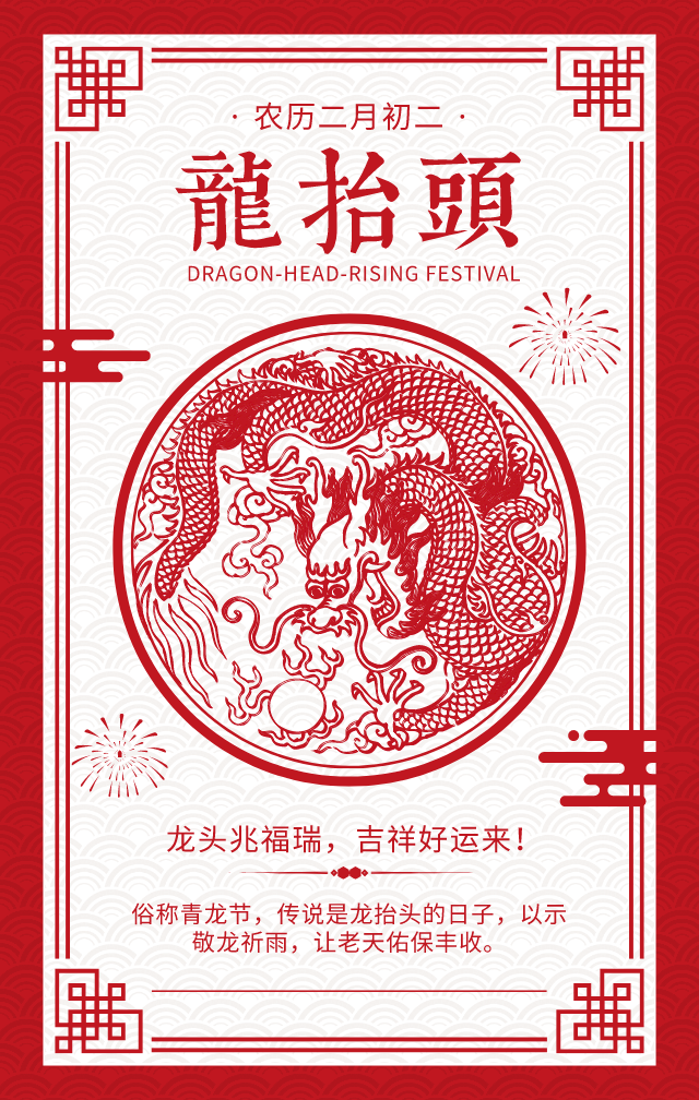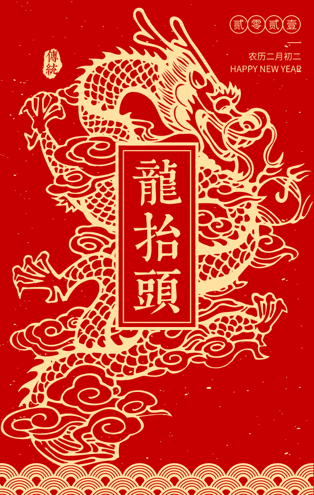 二月初二“龙抬头”,万物此时真正苏醒,春来了。这一天祈龙赐福,吃水饺叫“吃龙耳”,吃米饭叫“吃龙子”,吃馄饨叫“吃龙眼”,吃面条叫“扶龙须”。