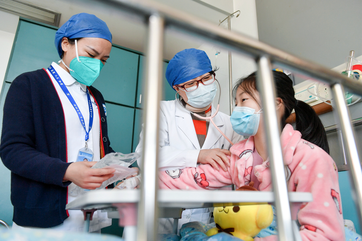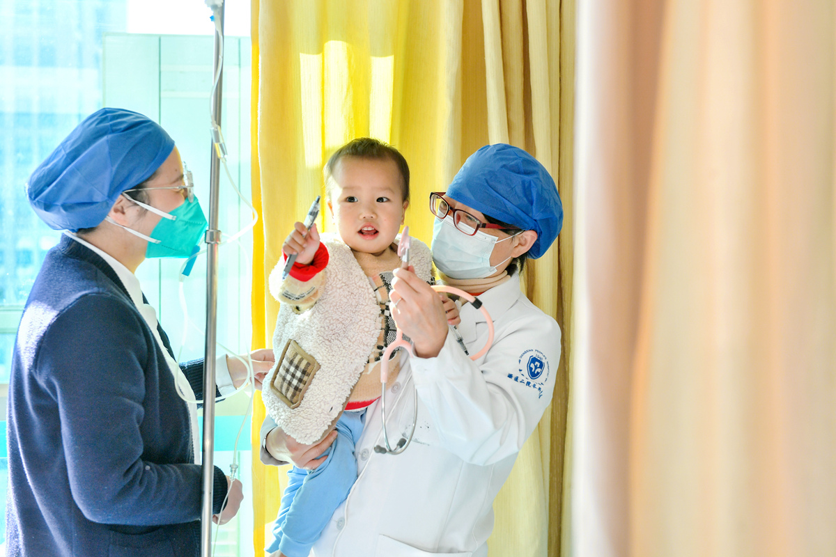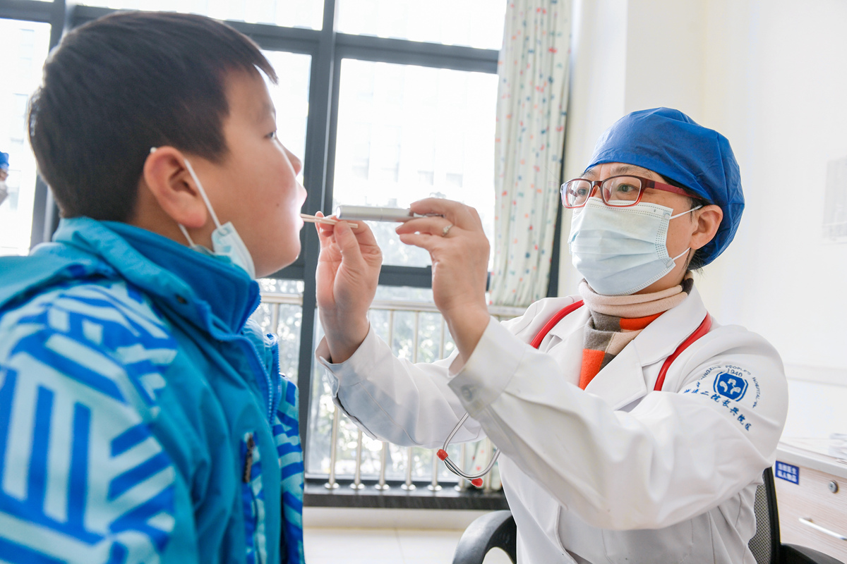 图为2022年12月19日,浙江省湖州市长兴县人民医院,返聘医生、儿科主任医师朱香兰正在接诊。