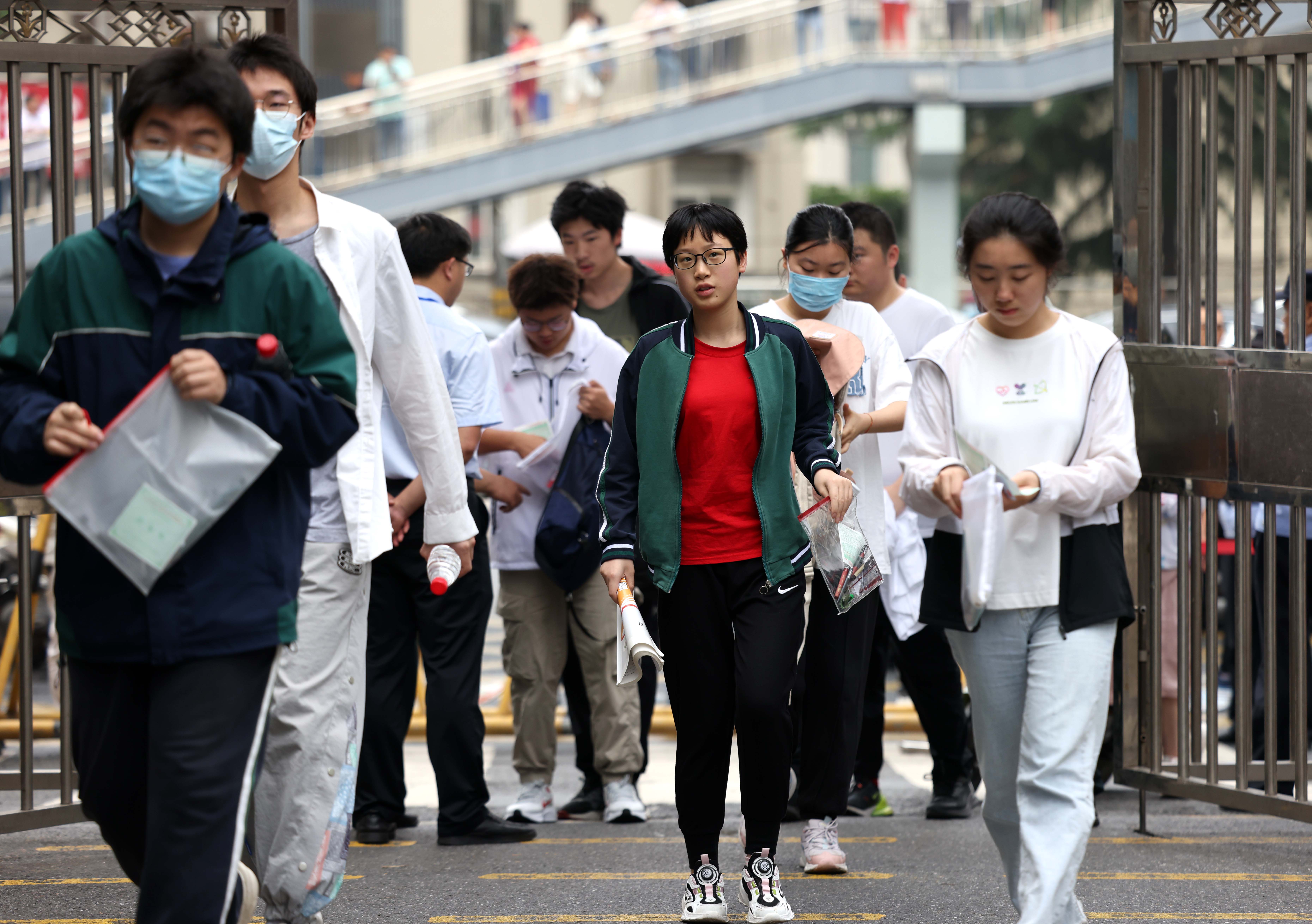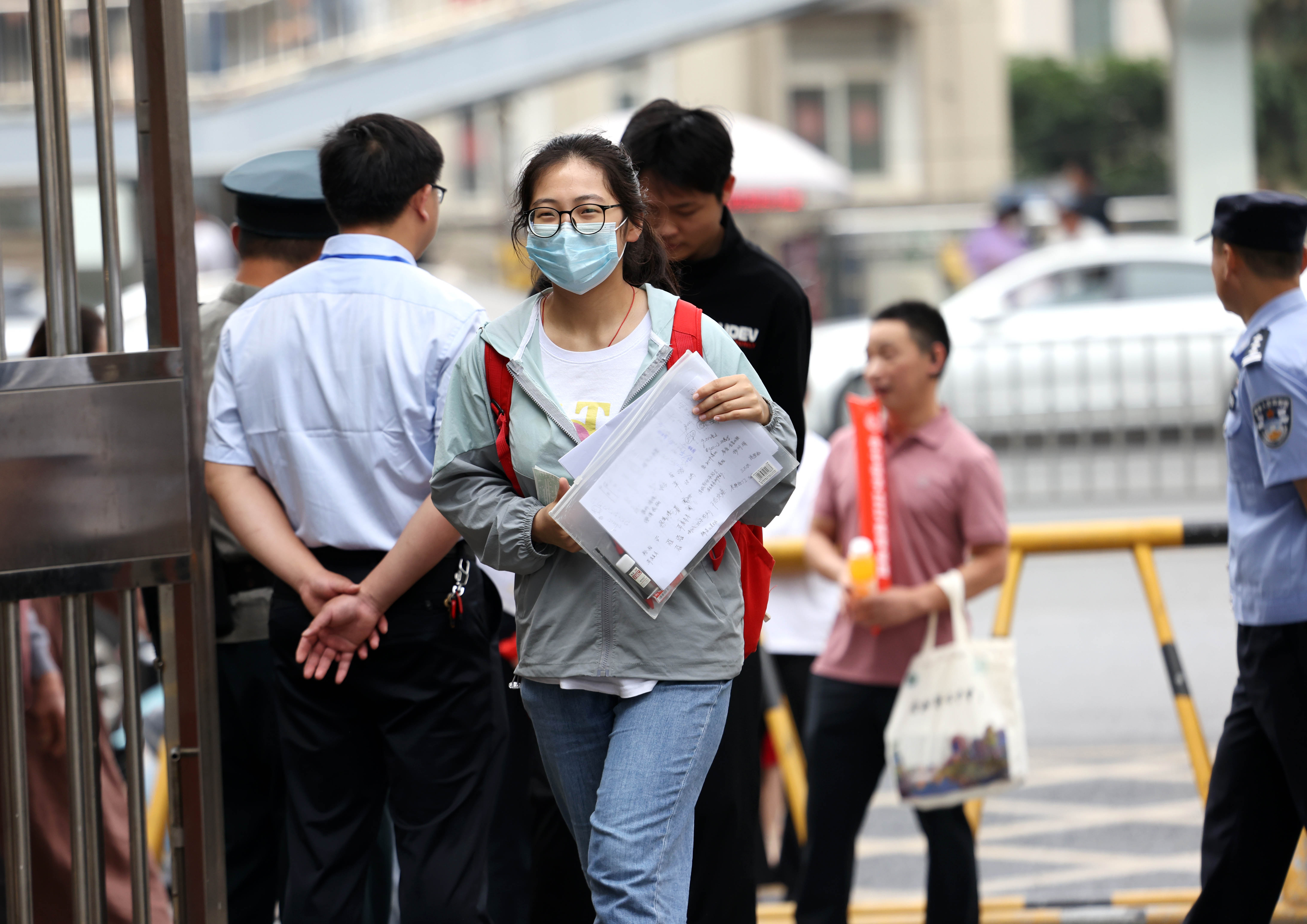 2023年6月7日,在安徽省合肥市第11中学高考考点,考生走进考场。