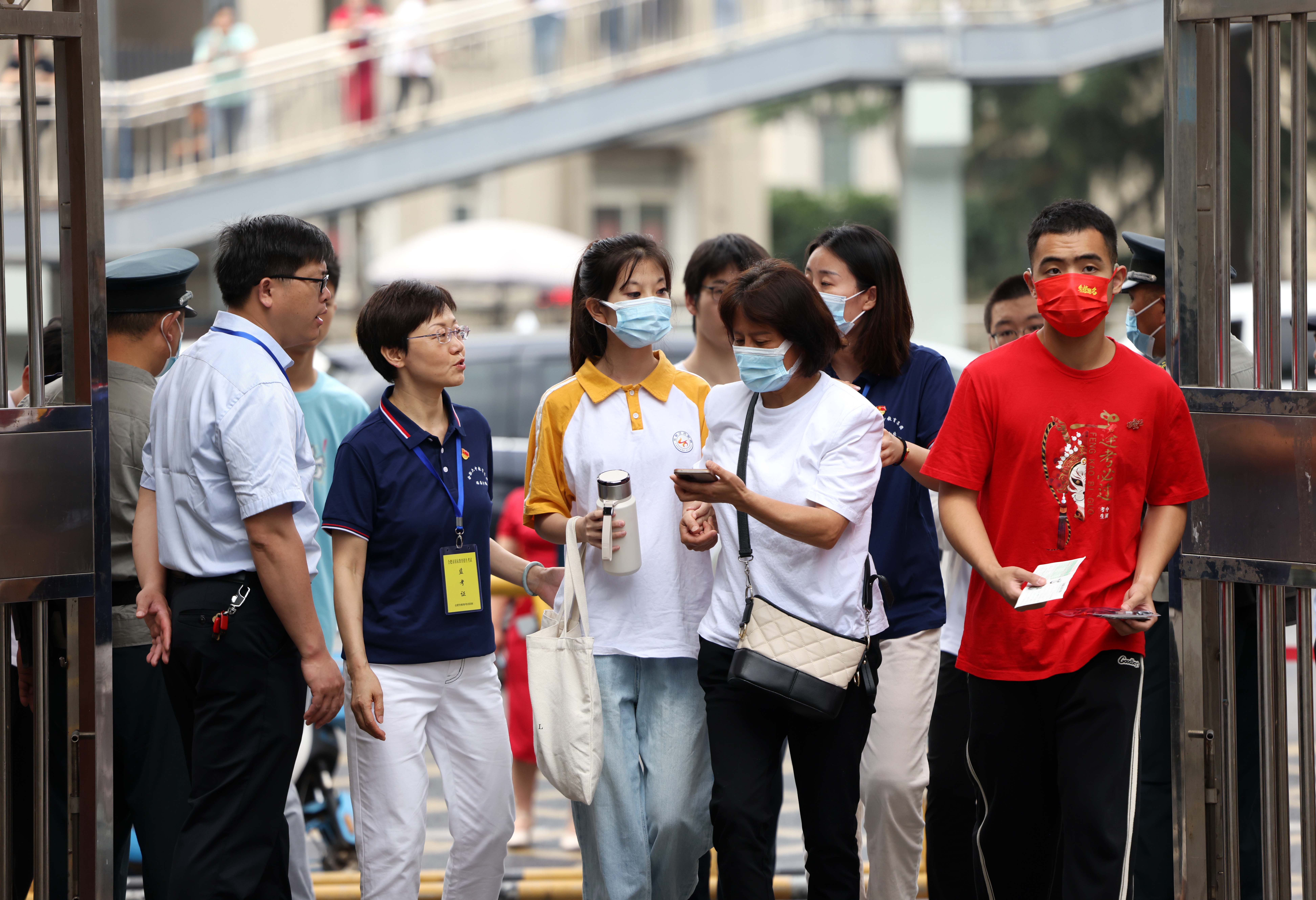 2023年6月7日,在安徽省合肥市第11中学高考考点,考生走进考场。当日,2023年全国高考拉开帷幕,据悉,为充分做好此次辖区高考考点的保障工作,安徽省合肥市瑶海区组织教育、卫健、公安、城管、消防、交警及属地等多部门联动,同时在各考点设立“党员志愿先锋岗”,为考生及家长提供暖心保障和爱心服务。(解琛 图/文)