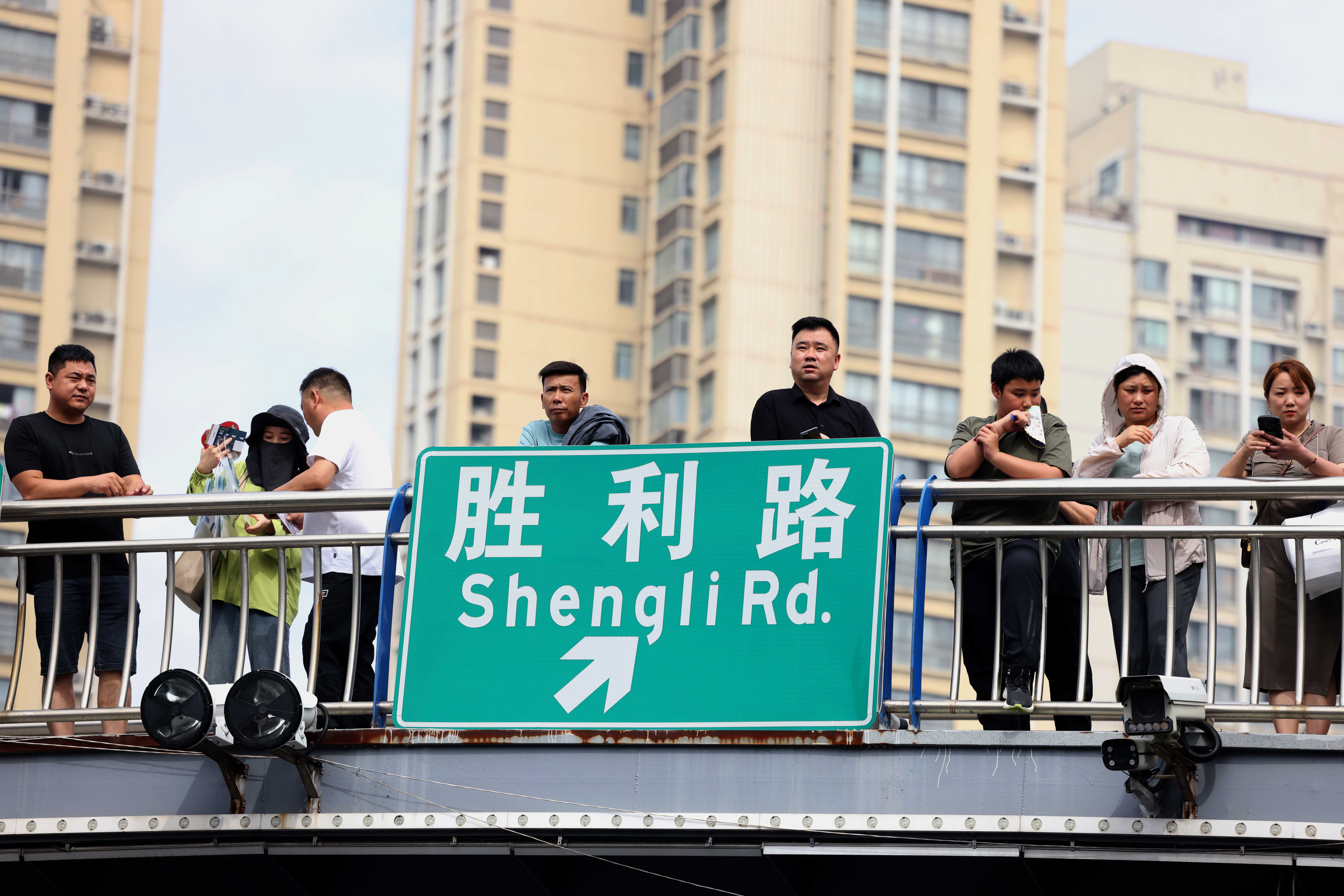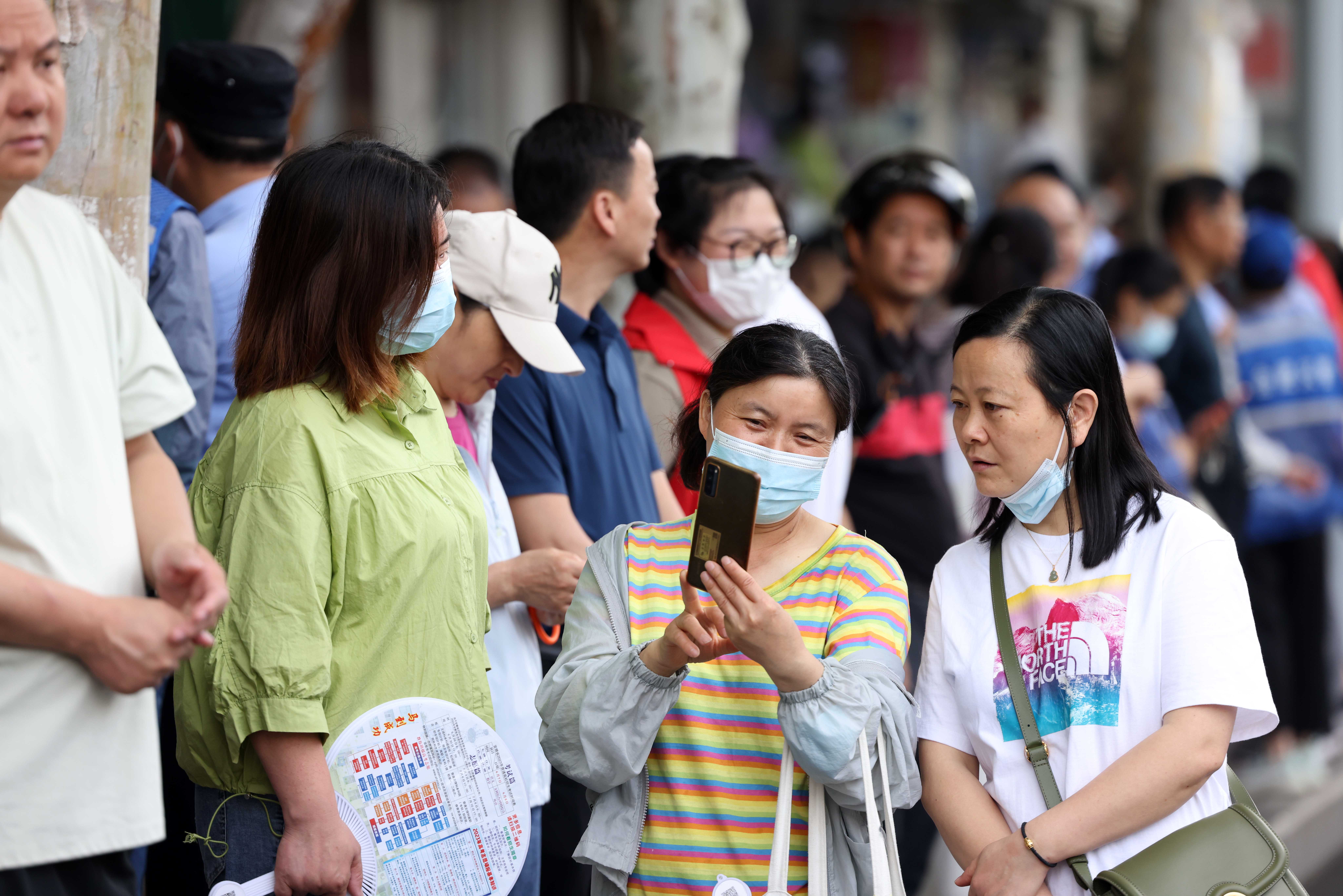 2023年6月7日,在安徽省合肥市第11中学高考考点,考场外等候的家长。