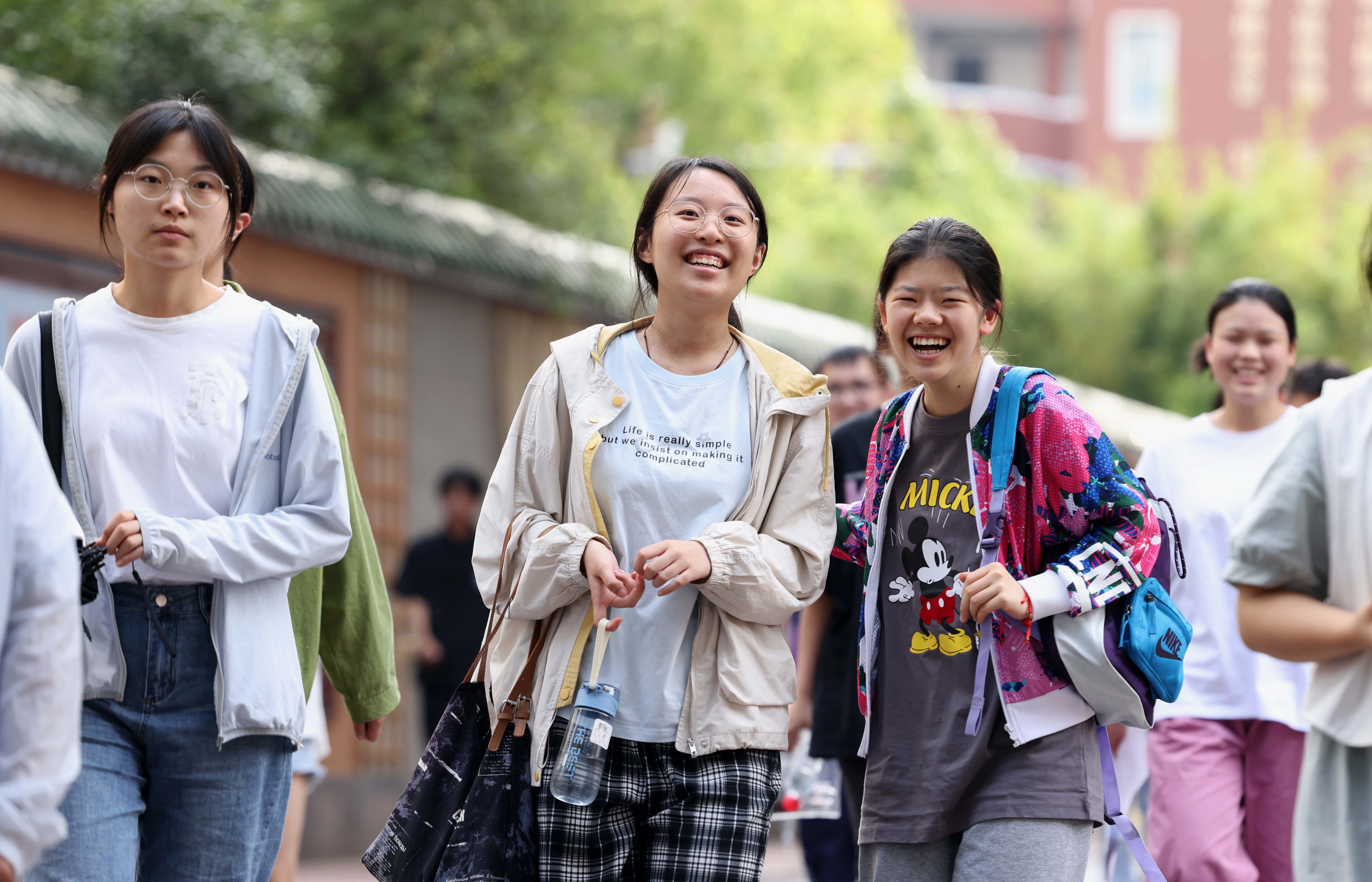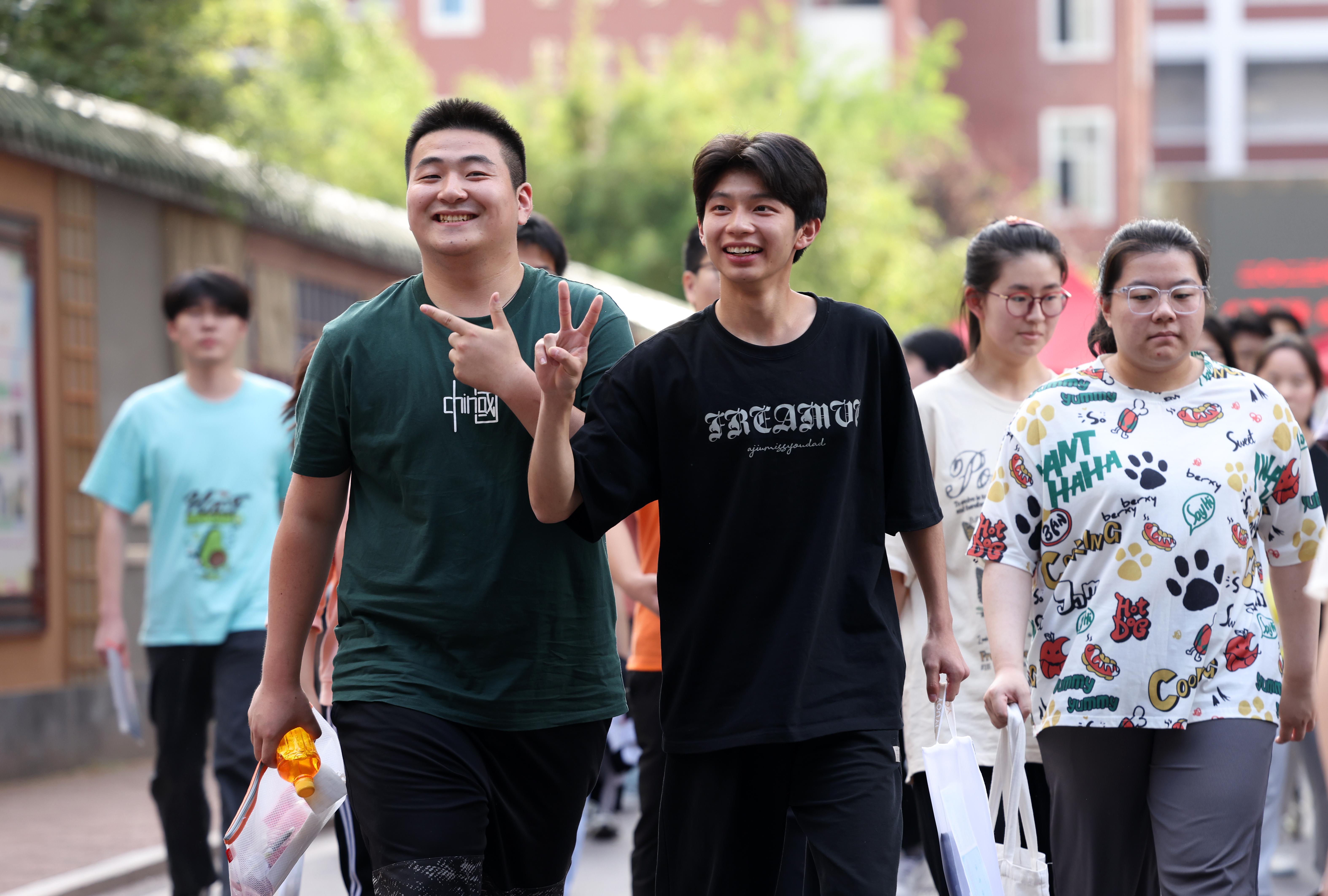 2023年6月8日,在安徽省合肥市第38中学高考考点,考生微笑的走出考场。