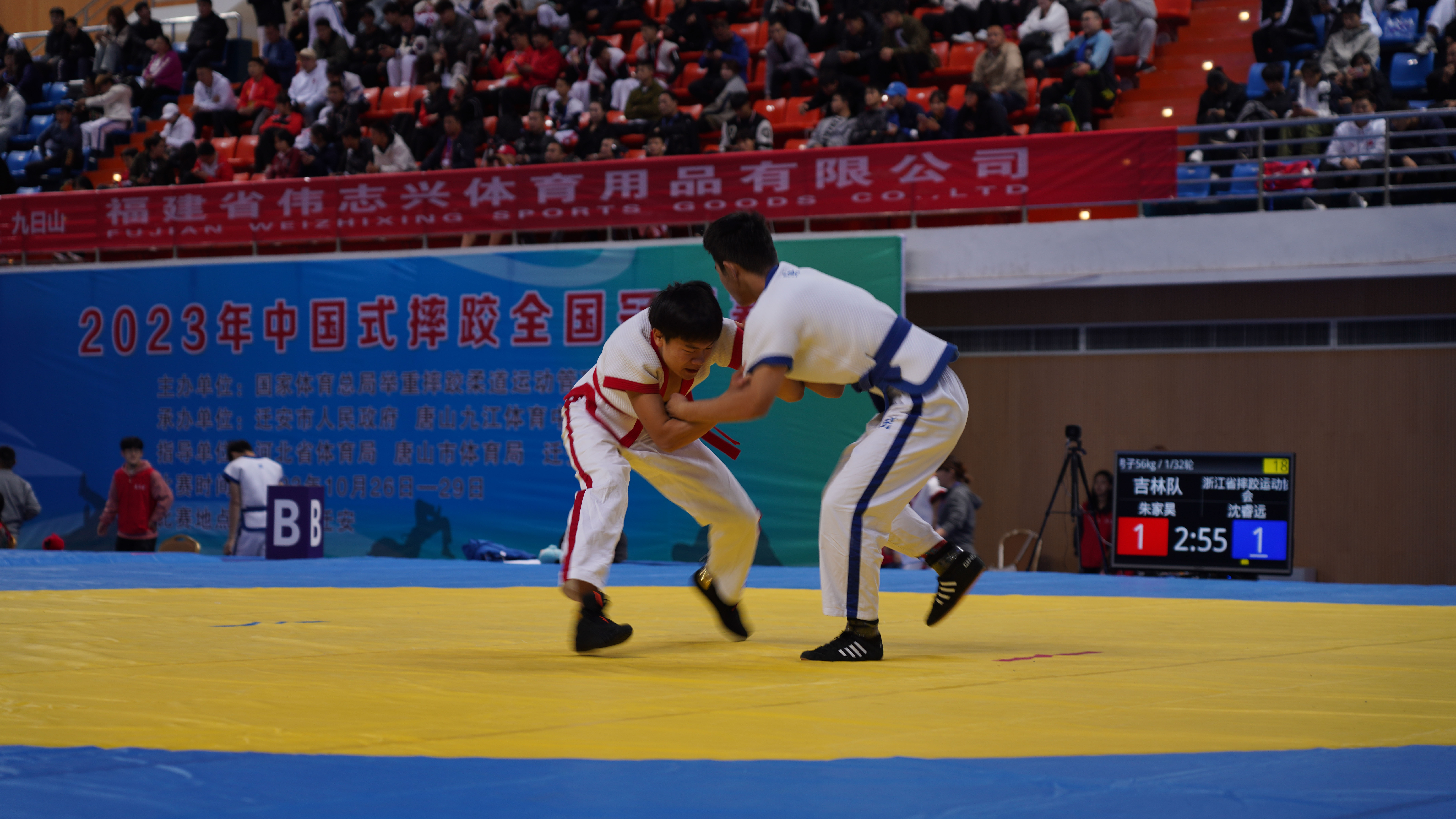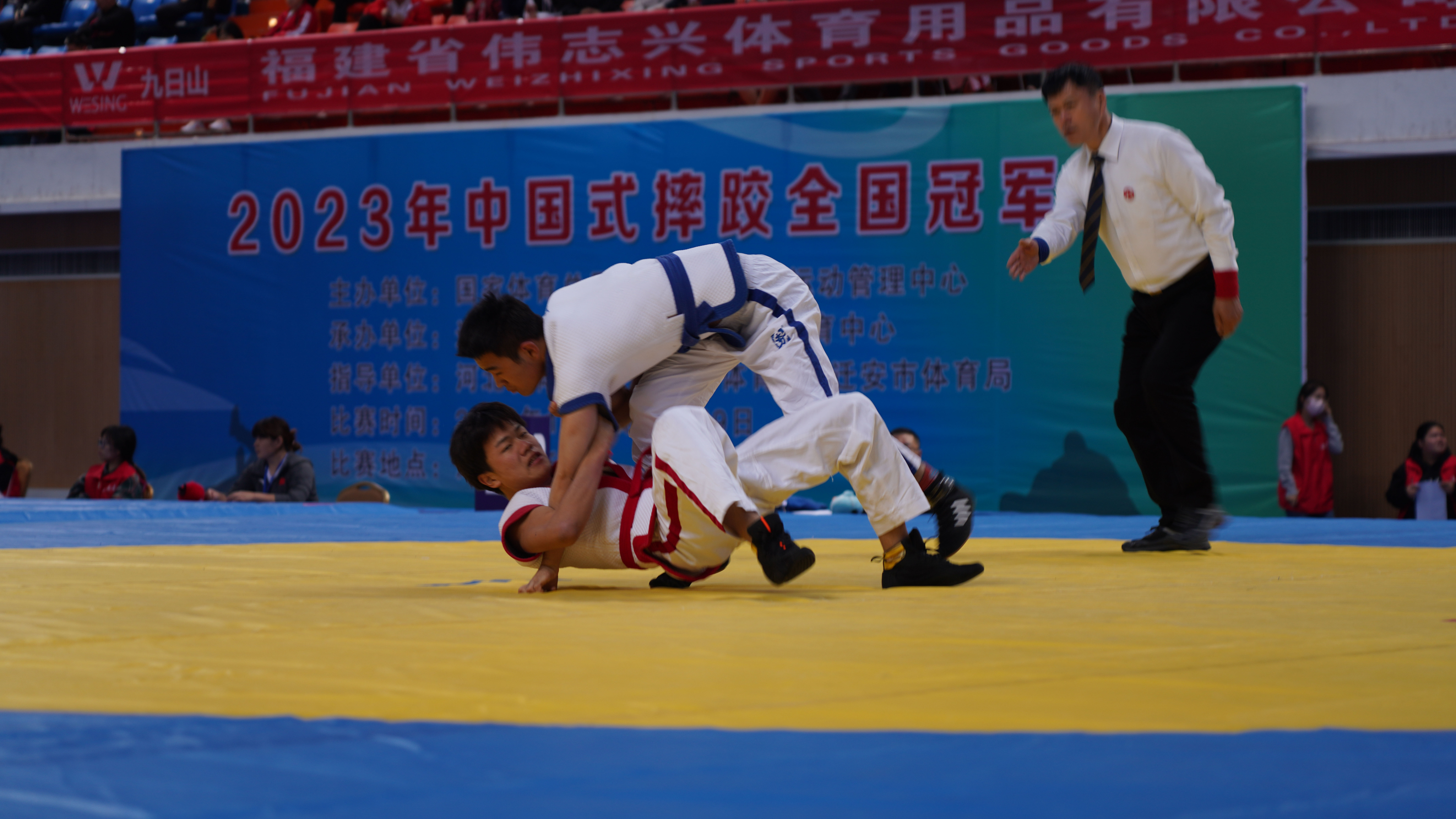 10月26日,2023年中国式摔跤全国冠军赛在河北省迁安市开赛。来自全国各地的32支队伍722名摔跤运动员参加比赛。