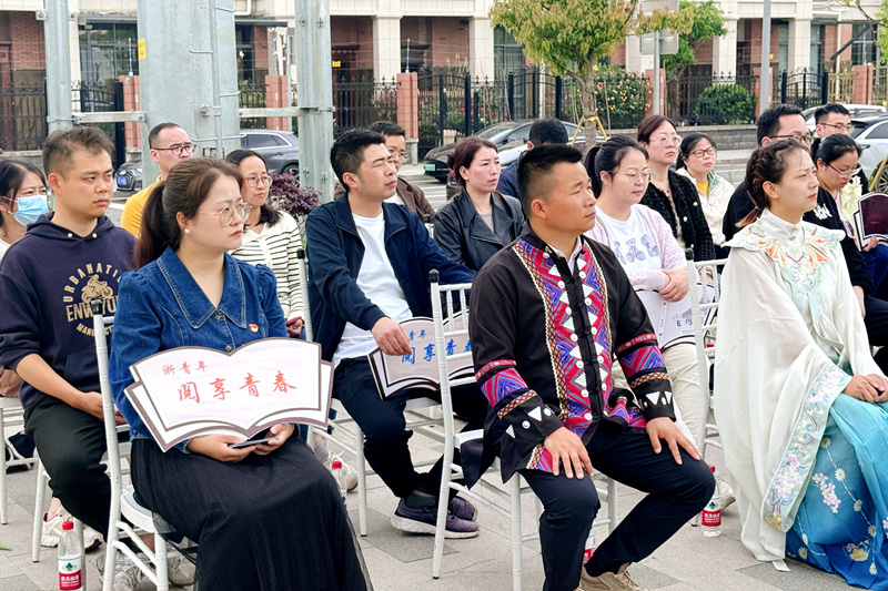 一场名为“红声嘹亮 诉我‘兴’声”——“浙青年·爱学习”理论走亲活动在浙江省湖州市长兴县雉城街道二虎头社区丹桂公园激情开讲。