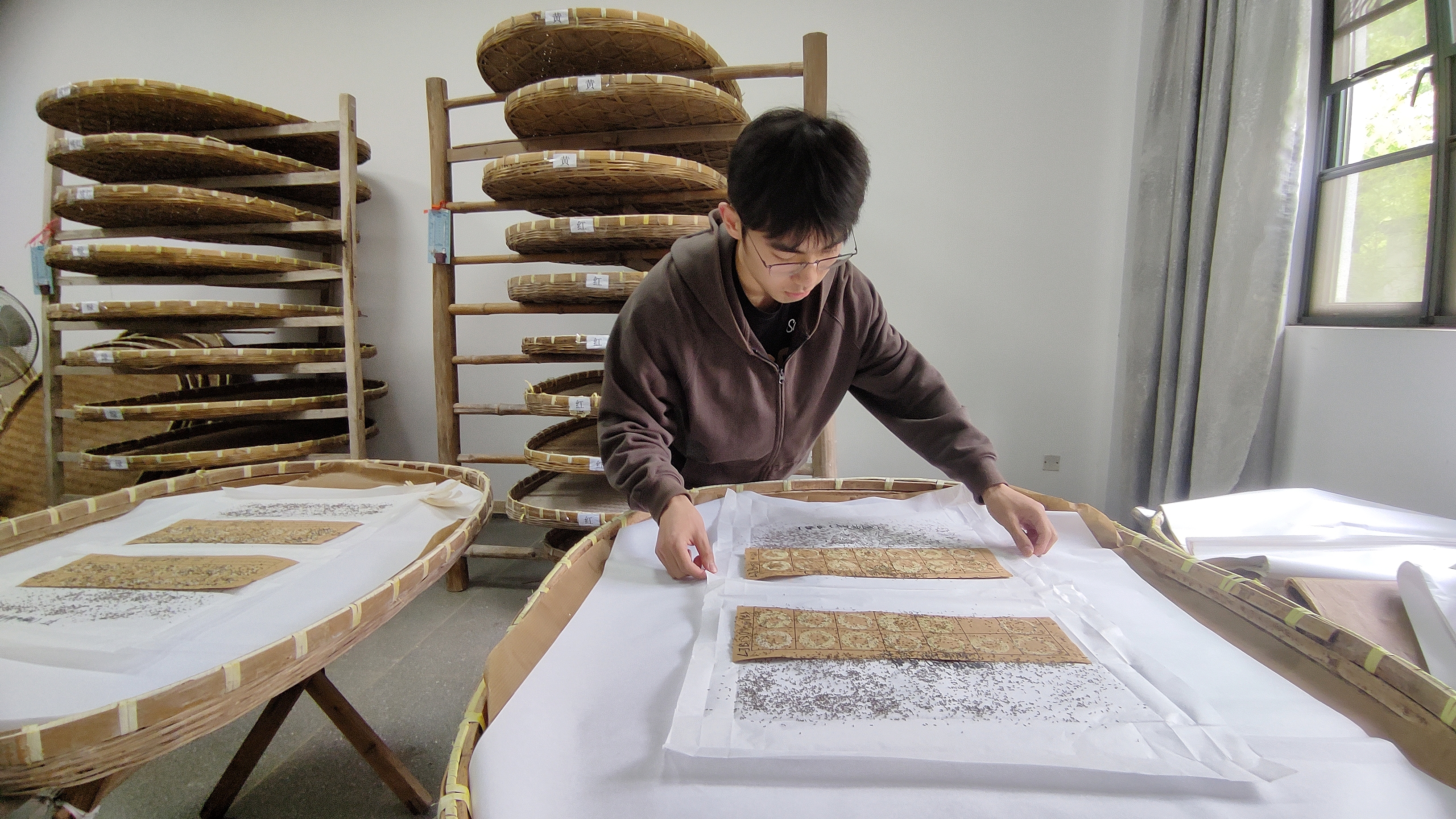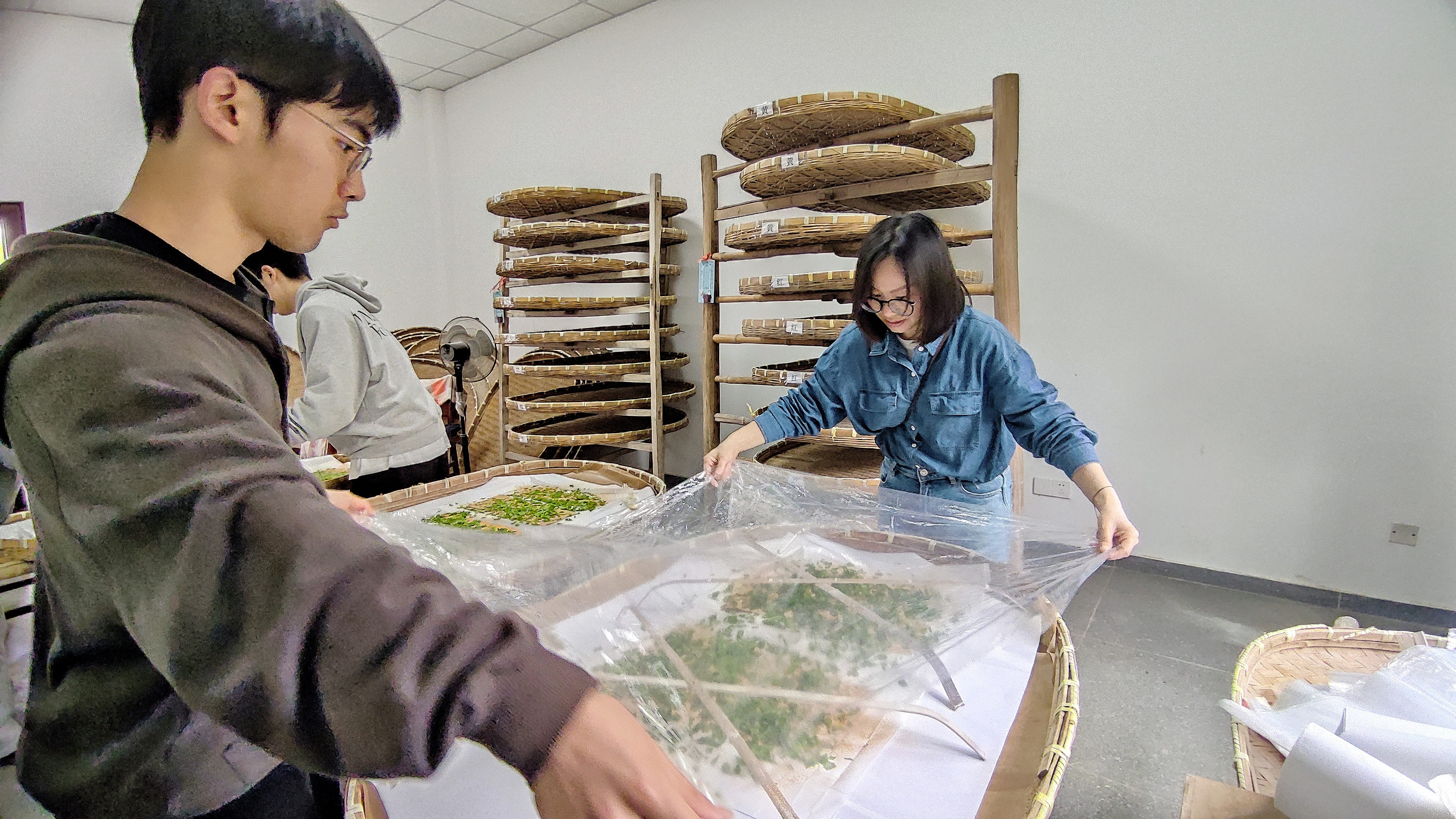 4月29日,在湖州师范学院教育部中华优秀传统文化(蚕丝绸)传承基地内的春(秋)蚕工作坊内,老师带着学生开展春蚕饲养中的收蚁工作。春蚕饲养要经过蚕种催青、收蚁、“四眠”、上簇结茧、采茧等过程。浙江省湖州市素有“丝绸之府”美称,该传承基地致力于传统蚕丝绸文化的抢救发掘、整理保护、传承创新和交流传播。王一堡 摄