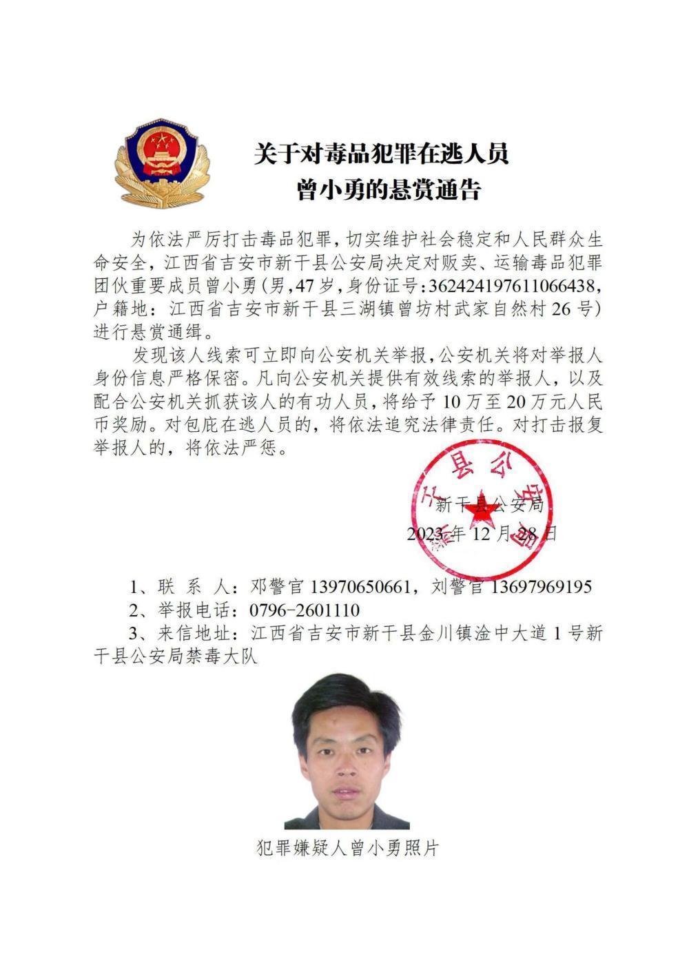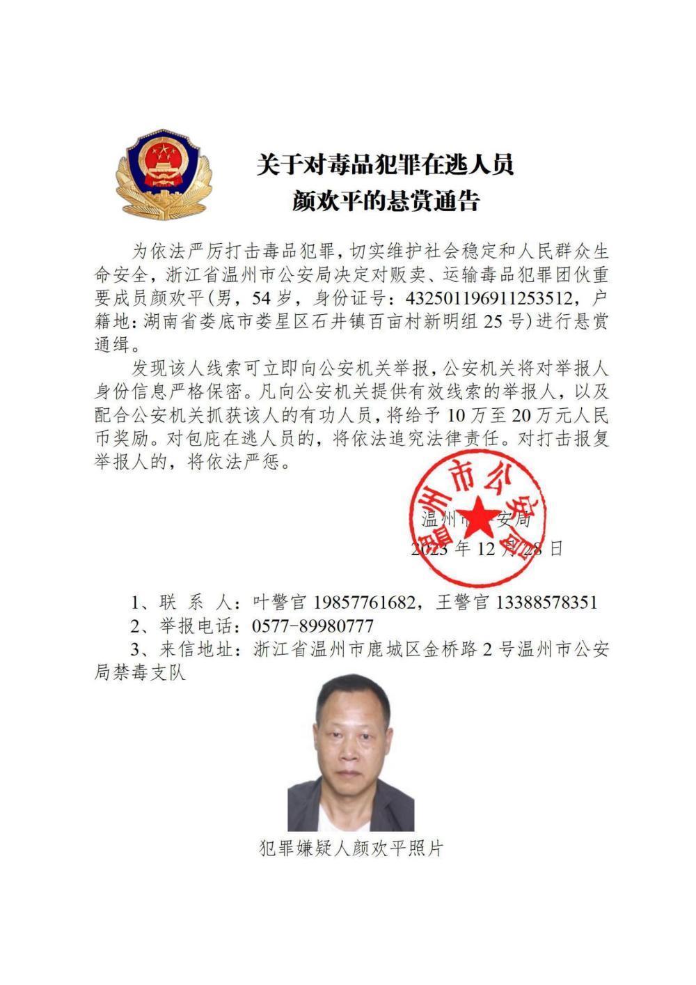 其中,湖南省郴州市公安局决定对张安龙、马文祥、吴玉杨进行公开悬赏通缉;湖南省株洲市公安局决定对杨金梅进行公开悬赏通缉;江西省新干县公安局决定对曾小勇、李国平、孙强进行公开悬赏通缉;浙江省温州市公安局决定对颜欢平进行公开悬赏通缉;四川省遂宁市公安局决定对母朝东进行公开悬赏通缉;贵州省黔东南州公安局决定对龙华进行公开悬赏通缉。