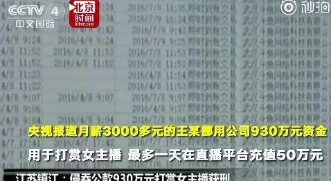 挪用930万公款打赏女主播