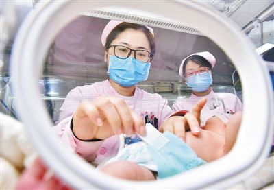 大年三十,河北石家庄新乐市医院新生儿科,医护人员在护理新生儿。