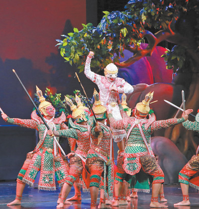 孔剧是泰国传统戏剧文化的代表,被称为该国“最精美的舞剧艺术”。该剧种有400多年的历史,融合了舞蹈、音乐、绘画等多种艺术形式。孔剧的演出剧目是根据古印度史诗《罗摩衍那》改编的单一剧本,剧中演员没有台词,依靠舞蹈动作和旁白唱曲推动情节发展。2018年,孔剧被联合国教科文组织列入人类非物质文化遗产代表作名录。