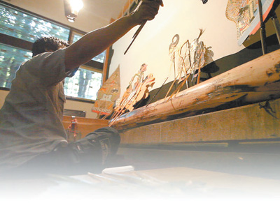 印度尼西亚梭罗艺术学院的教师正在教授哇扬皮影戏表演。