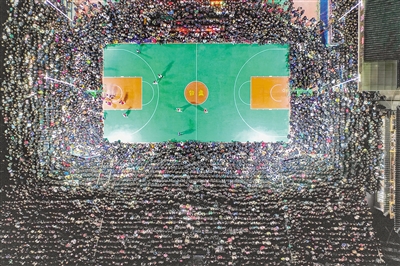 贵州省台江县台盘村,村民观看“村BA”比赛。