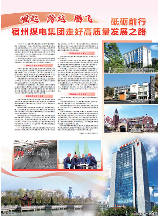 宿州煤电将继续秉持新观念、新思路,在高速度、高效益的探索之路上阔步前行,在建设“百年老店”上迈上新台阶,为全面建设社会主义现代化国家,推进中华民族伟大复兴而努力奋斗。