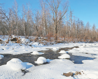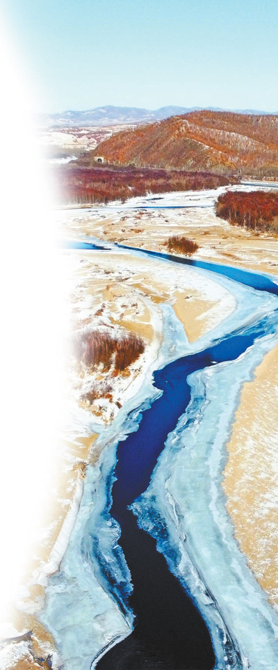 内蒙古莫力达瓦达斡尔族自治旗境内的不冻河景色。