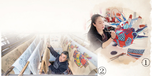 一支画笔在绢面上游走,只几下,就出现了一只鸟的图案,线条生动流畅。王春燕在做第三道工序。凑近了看,却闻不到颜料的味道。王春燕说,风筝与人频频接触,颜料必须符合国家标准。