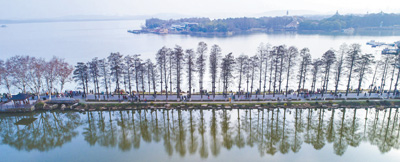 3月3日,市民在武汉东湖绿道休闲游玩。