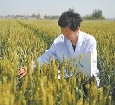 中国科学院南皮生态农业试验站研究人员在查看小麦长势。苑立伟摄