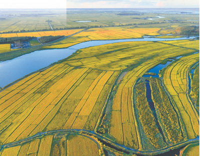 一条嫩江,引来高产田,也引来优质稻。在嫩江下游的大安市联合乡万福村,爱好摄影的圣力种植农民专业合作社负责人王千士递给记者一台长焦相机。拉近焦距,可以看到金灿灿的稻田里,不时闯进多种飞鸟。王千士在旁如数家珍:“苍鹭、白鹭、东方白鹳……每年深秋候鸟迁徙时,都会来稻田做客。”