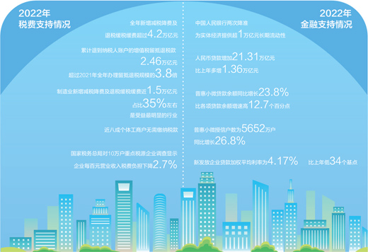 数据来源:国务院新闻办1月13日举行的2022年金融统计数据新闻发布会、国家税务总局1月31日举行的2022年度新闻发布会