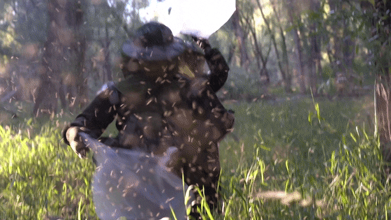 蚊子瞬间从豁口涌向防蚊帽中