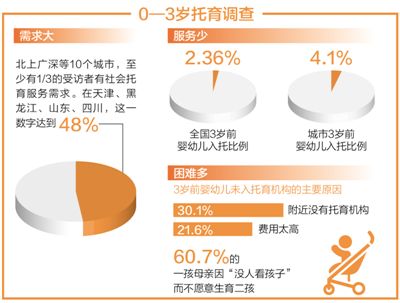 “当前3岁前的托育服务有需求缺供给,即便有些早教等机构能提供短时间的托育服务,但质量往往难以保障。”中国人民大学国发院社会转型与法治研究中心研究员杨菊华认为,托育服务“供给不足、质量不高”是突出问题。