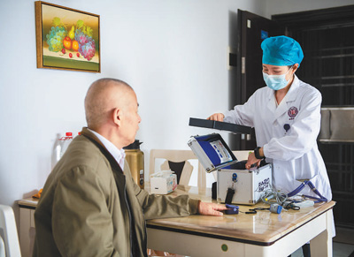 河北省沧州市,“网约护士”在市民家中为老年人服务。