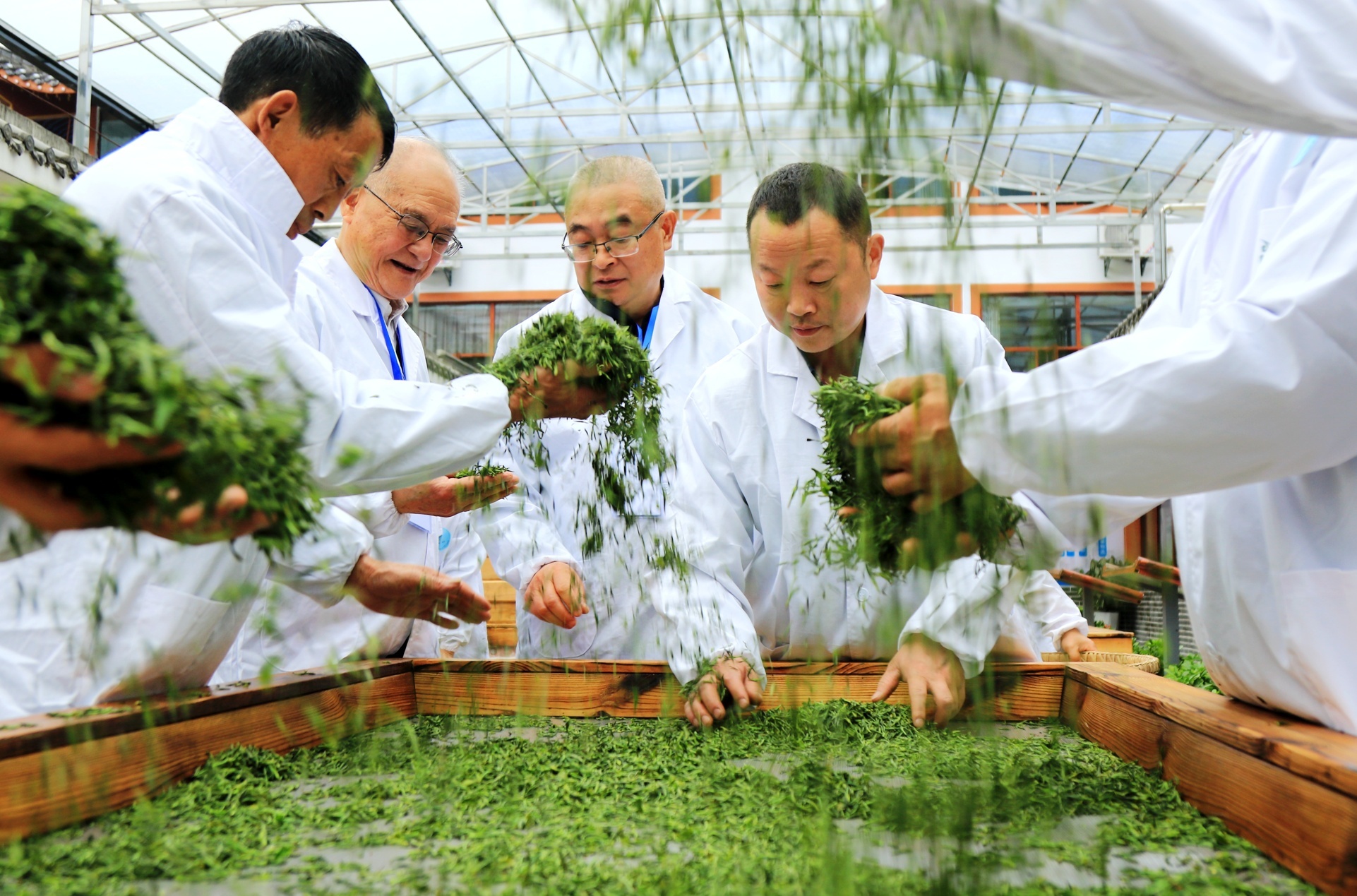 双方一拍即合。当年年底,在当地支持下,张文旗在芭蕉乡注册成立了恩施市润邦国际富硒茶业有限公司。他一边请来杨胜伟等10多位曾经从事手工制茶的老师傅,学习恩施玉露的制作技艺;一边从浙江、江苏等地引进杀青机、揉捻机、理条机等现代设备,尝试在部分加工环节替代人工。公司出产的茶叶上市之后很快被抢购一空,适制恩施玉露的鲜叶价格从每公斤十几元涨到上百元。