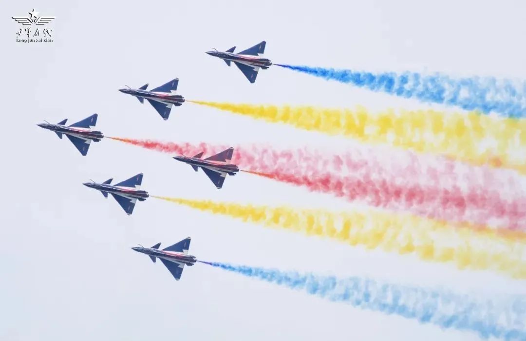 五历阅兵示大礼、十战珠海舞长空、九赴长春绘彩练、八出国门展雄风,九霄之上六机劲舞惊艳绚丽,多彩航迹不断向全国乃至世界延伸,在俄罗斯、马来西亚、泰国、阿联首、巴基斯坦、新加坡,他们让“中国红”和“空军蓝”成为异国天空上明亮的颜色。