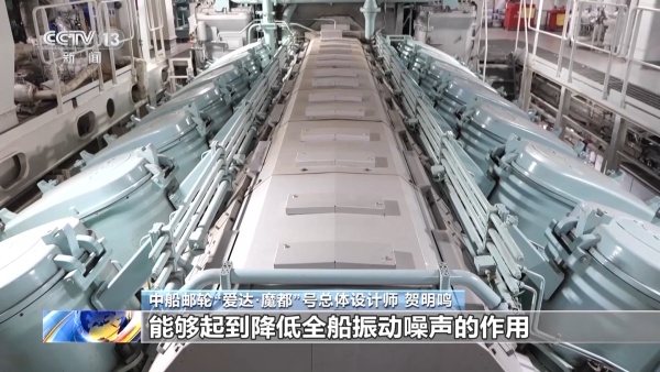 中船邮轮“爱达·魔都”号总体设计师 贺明鸣:我们还做了很多隔音措施,比如隔音棉、浮动地板以及主机基座下面的弹性基座,能够起到降低全船振动噪声的作用。