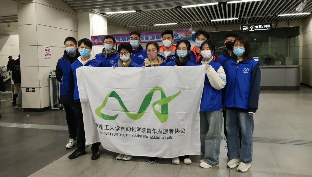 陆玉凡(后排左一)参加自动化学院青年志愿者协会组织的地铁站志愿服务活动