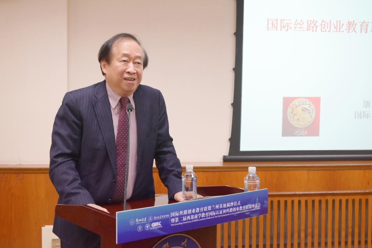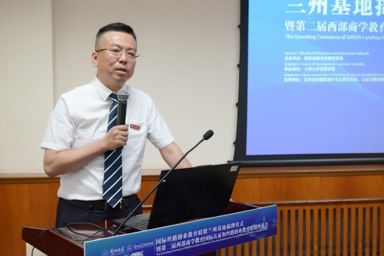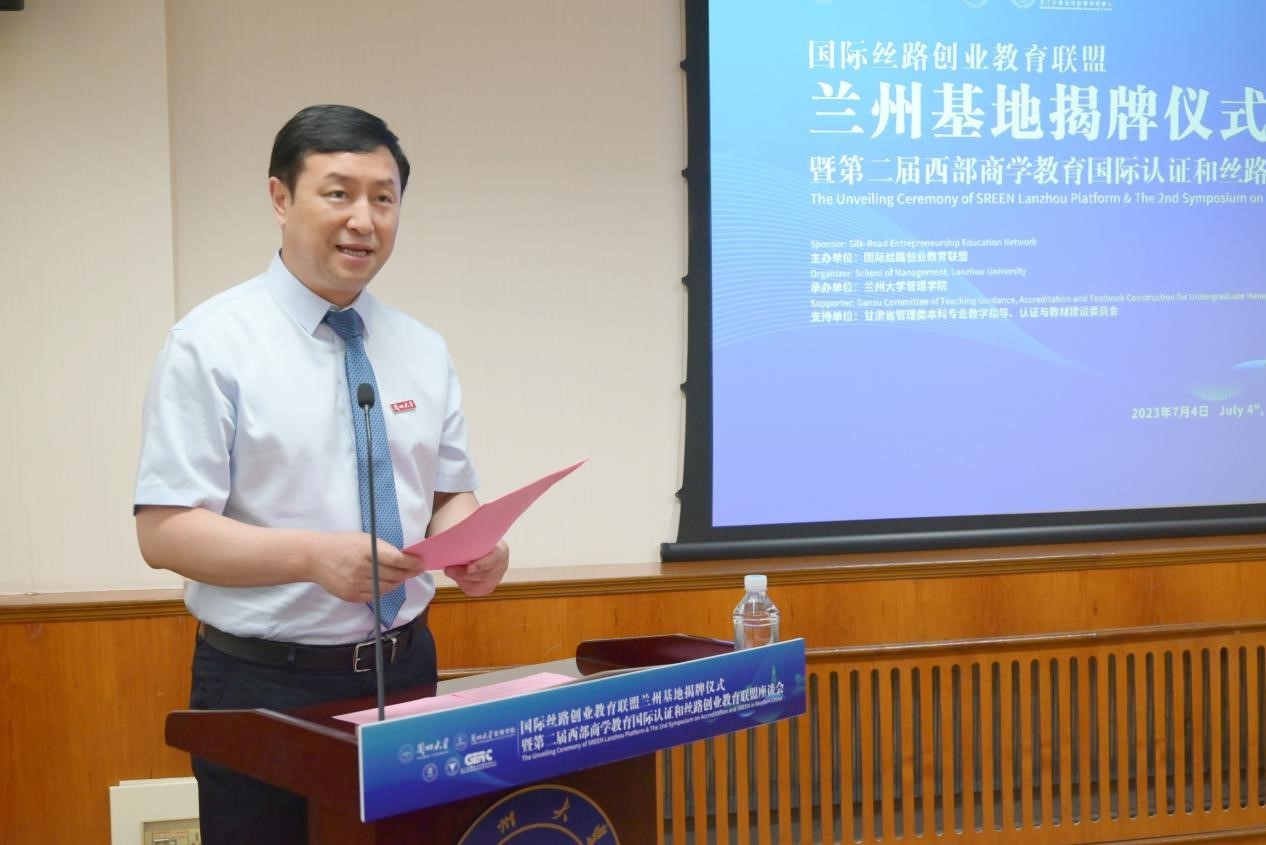 7月4日,由国际丝路创业教育联盟、浙江大学全球创业研究中心主办,兰州大学管理学院承办,甘肃省管理类本科专业教学指导、认证与教材建设委员会支持的国际丝路创业教育联盟兰州基地揭牌仪式暨第二届西部商学教育国际认证和丝路创业教育联盟座谈会在兰州大学举办。兰州大学副校长勾晓华,国际丝路创业教育联盟理事长、浙江大学全球创业研究中心主任王重鸣,电子科技大学经济与管理学院副院长、国际丝路创业教育联盟成都基地负责人肖延高参加会议。揭牌仪式由兰州大学管理学院党委书记刘亚军主持。