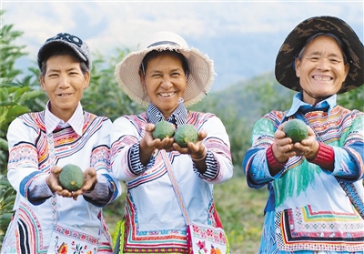牛油果是怎么回事?原来,这片山里有500亩牛油果基地,就在附近的面前村小组。我一听来了兴趣,经营者浙江台州人孔庆波开皮卡车来接我们。通往面前村的路正在浇灌水泥,孔庆波对此百感交集:这条路我5年里开废了20多个轮胎。在人迹罕至的大山里种牛油果,孔庆波看中的是这里的气候:干热河谷地带牛油果不爱得根腐病,昼夜温差大,果子甜度刚刚好,“我们考察了几个省才选中这里,只要有水,荒山秃岭也是金山银山!”