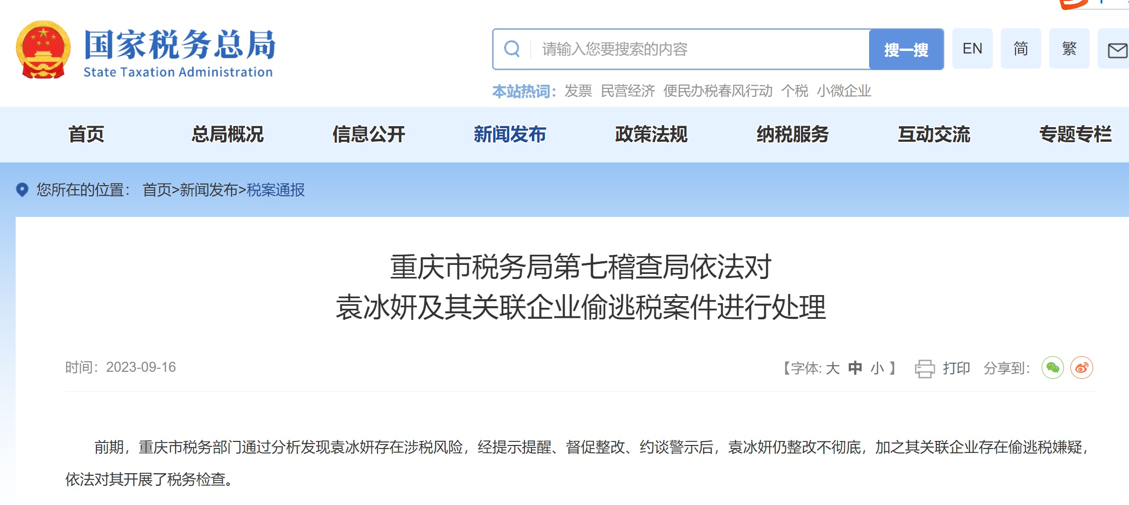 又有明星、网红因偷逃税被罚。近日,国家税务总局公布4起涉税案件,其中女演员袁冰妍及其关联企业偷逃税被追缴、加收滞纳金并罚款超430万元;网红主播吴川因少缴、偷逃个税,被追缴并罚款1359.08万元;主播单亚辉同样被追缴税款、加收滞纳金并罚款共计32.75万元。