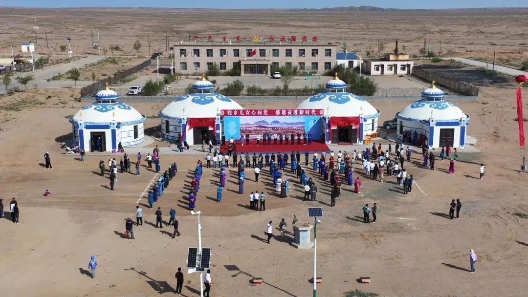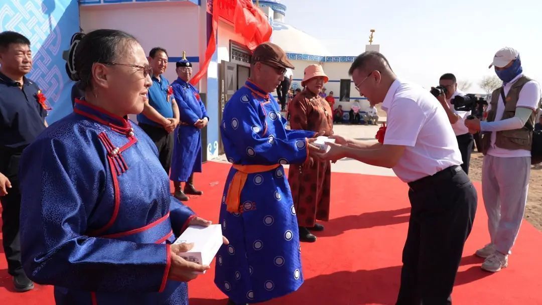 一大早,阿左旗银根苏木的牧民们身着节日盛装,相聚在苏木镇所在地,共同见证网络通信覆盖工程竣工。