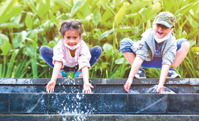 小朋友在位于茅洲河畔的燕罗湿地公园嬉戏。