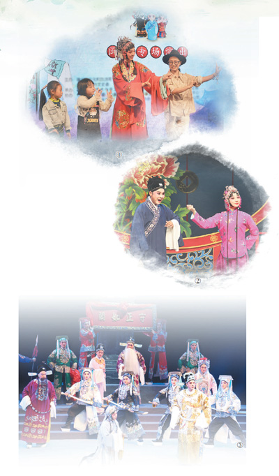 图①:福州闽剧院走进福州建筑工程职业中专学校与学生们互动。