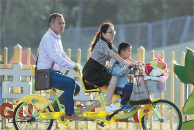 江苏省淮安市古淮河生态园中,家长和孩子一起度过快乐时光。影像中国