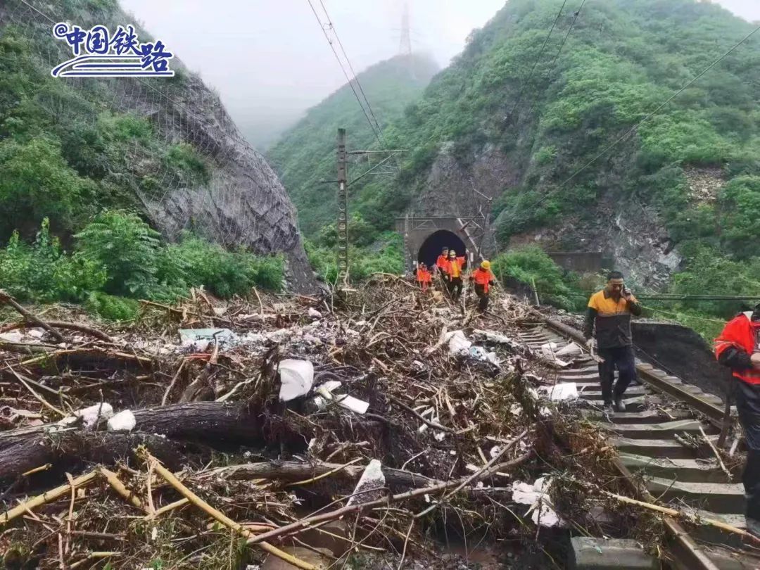 7月31日20时56分,57402次物资运输列车从张家口站始发,经宣化站运往沿河城站。由于沿途铁路线受泥石流掩埋较为严重,铁路部门一边连夜清理线路,一边推进。运输物资的列车于8月1日清晨抵达距离沿河城站8至9公里处。