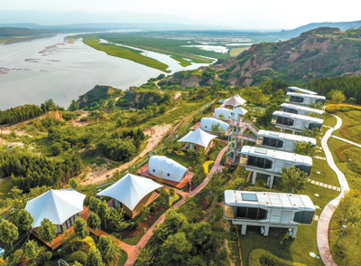 山西省运城市芮城县大力发展黄河旅游产业,图为该县禹王台太空舱度假休闲湾一角。