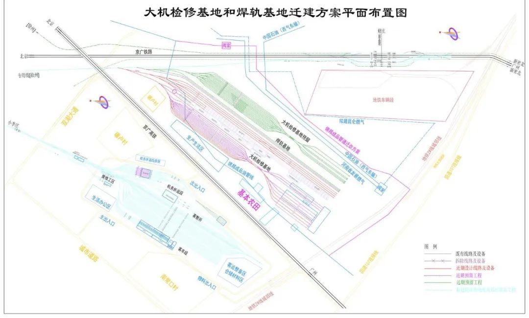 “两个基地”迁建工程是“郑州枢纽郑州南站及陇海外绕线工程”的相关工程及控制性工程。根据计划,该工程建成投用后将拆除原有的大机检修基地及焊轨基地, 为新建郑州南站(原小李庄客站)提供建设条件 。