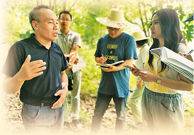 记者申智林(右三)在湖南绥宁县上堡村采访。
