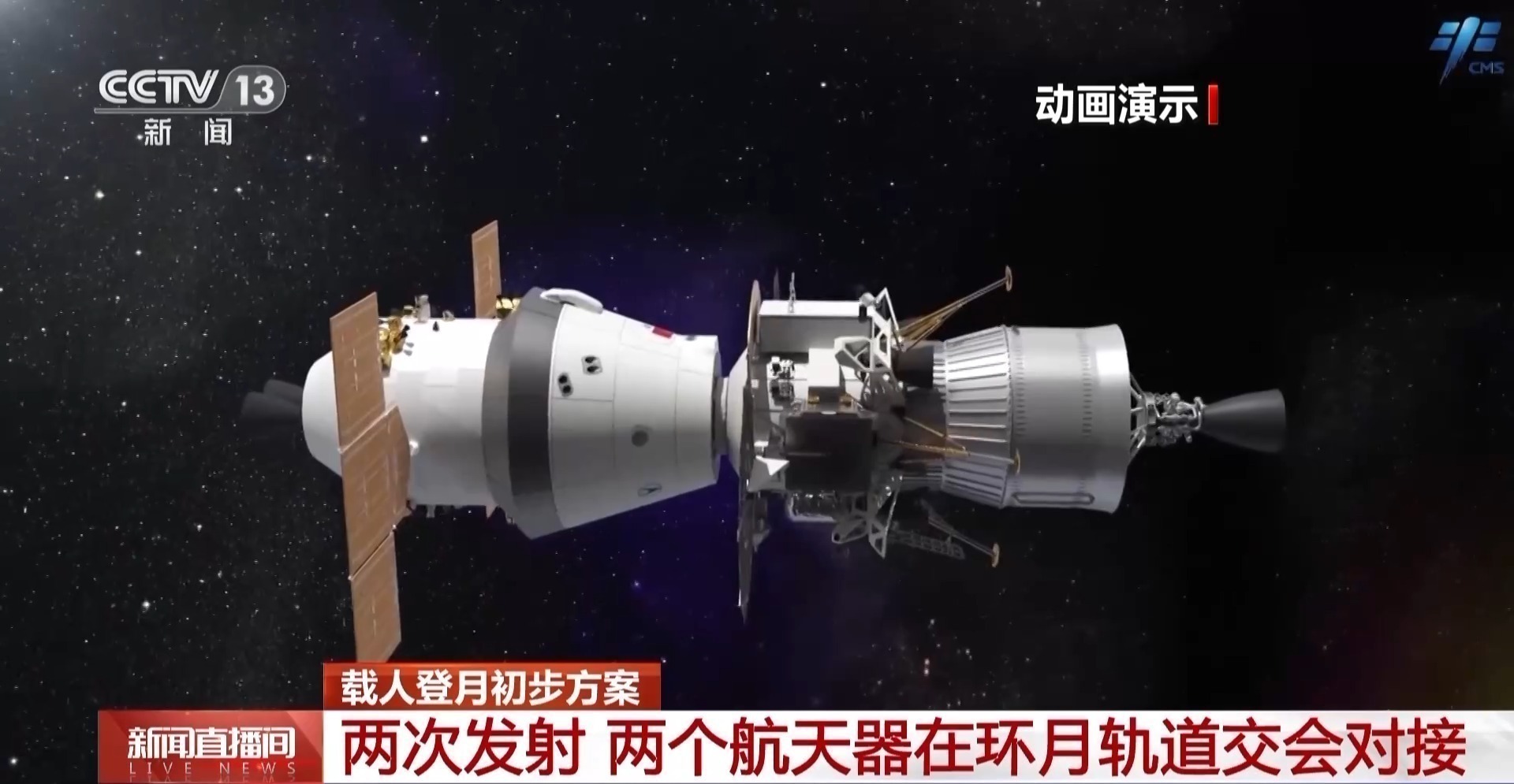载人登月初步方案:两次发射 两个航天器在环月轨道交会对接