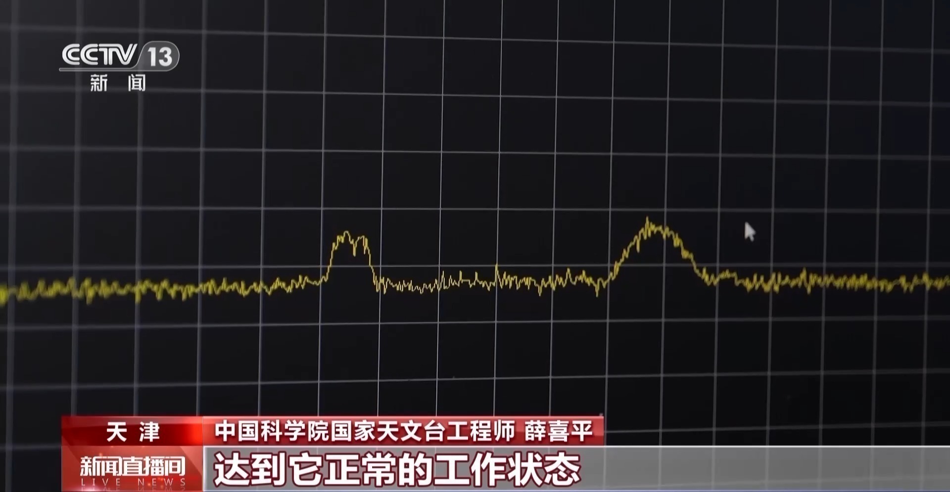 中国科学院国家天文台工程师 薛喜平:这个是用来做信号判断的,凸起的地方就是信号所在的地方。整个工作流程都是全自动化运行的,天线根据自己的时间节点去控制各个设备,达到它正常的工作状态。