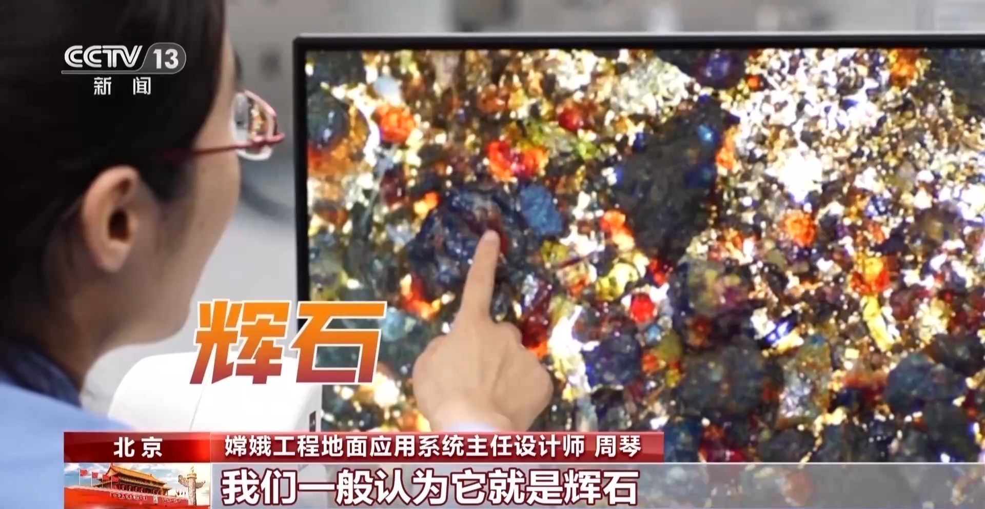 嫦娥工程地面应用系统主任设计师 周琴:月壤就是指颗粒粒径特别细的一些小的岩石或者矿物颗粒。这个颗粒我们就可以看到它是由不同的矿物组成的,像这种棕色的,我们一般认为它就是辉石,这个颜色稍微深一些的,像金属光泽的这种是钛铁矿,颜色稍微浅一点,有可能是长石,像棕黄色的一般都是橄榄石。