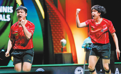 在当地时间26日进行的混双决赛中,世界排名第一的中国队组合王楚钦/孙颖莎展现强大实力,以3∶0战胜世界排名第二的日本队组合张本智和/早田希娜,夺得冠军,这也是这对组合连续两次夺得世乒赛混双项目冠军。首次参加世乒赛的中国队另一对组合林诗栋/蒯曼获得混双季军(并列)。