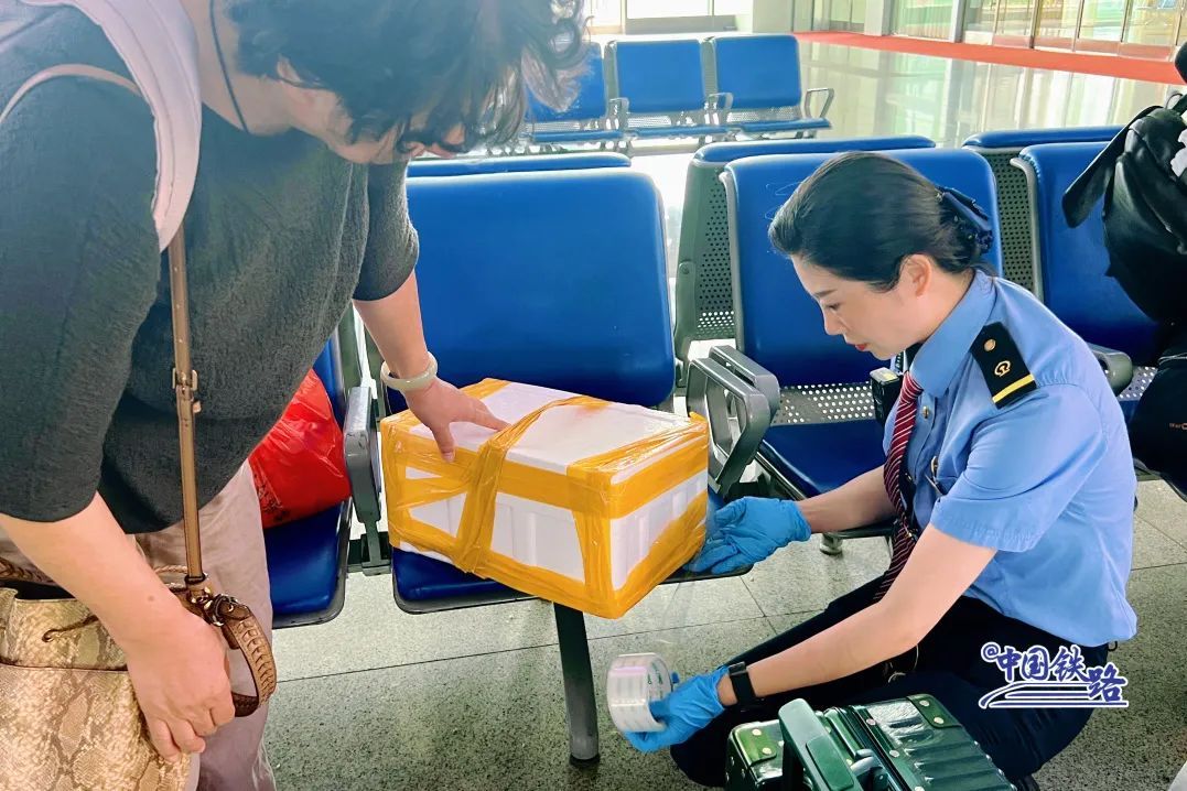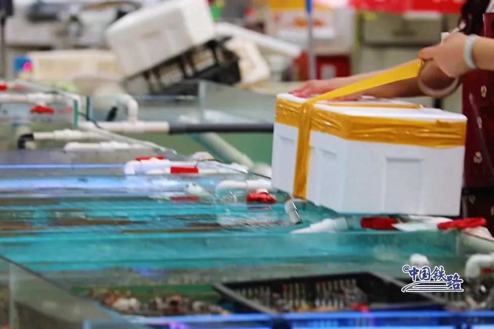 如附近有中铁快运营业厅,旅客可直接到营业厅办理运输业务。工作人员会将装满海鲜的泡沫箱放入高铁快运专用包,在列车上还有专用储存柜,全程轻拿轻放、恒温运输、平稳安全。