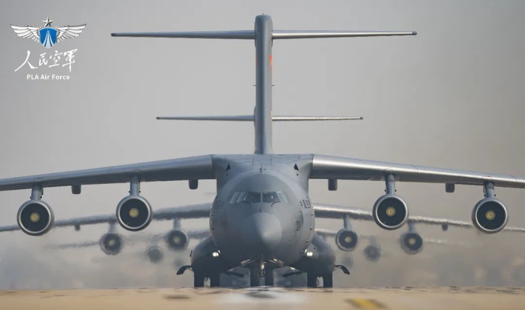 运-20飞机开展大规模出动演练。